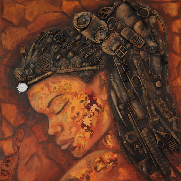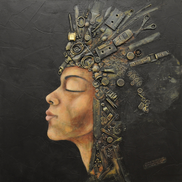 Assemblage auf Leinwand | 150 x 50 cm